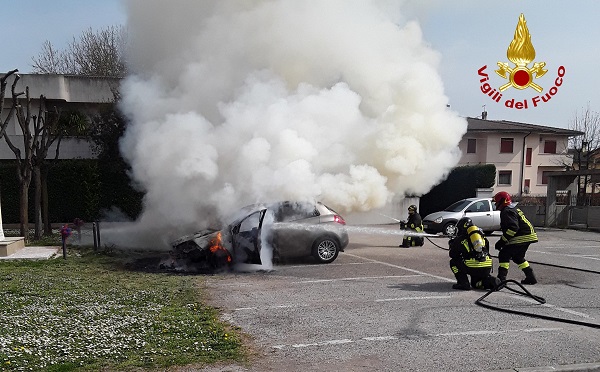 Poco prima delle 13.30, i vigili del fuoco sono intervenuti per un incendio auto in piazza Umberto I ad Albettone. La donna alla guida di una Fiat Bravo mentre si apprestava a parcheggiare, è stata avvertita da un altro automobilista delle fiamme, divampate sotto il motore. Completamente avvolta dalle fiamme l’auto all’arrivo dei pompieri di Lonigo che hanno spento il rogo.. Le operazioni di spegnimento e messa in sicurezza del luogo sono durate circa un’ora.