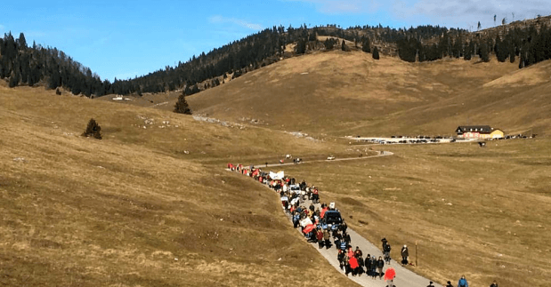 Si è svolta sabato la manifestazione nazionale ‘Un mese dopo la catastrofe’, organizzata da numerose associazioni animaliste e ambientaliste (Iams- Impegno e Azione per un mondo sostenibile, da Enpa-Ente nazionale protezione animali, Lac-Lega per l’abolizione della caccia, Lav-Lega anti vivisezione, Lidaa-Lega italiana difesa animali e ambiente, Oipa-Organizzazione internazionale protezione animali, Mountain Wilderness, Lndc-Lega nazionale per la difesa del cane, Lipu-Lega italiana protezione uccelli, Wwf-World Wildlife Fund, Ecoistituto del Veneto Alex Langer, Coordinamento protezionista Veneto e Legambiente) che si è svolta a Piana della Marcesina. Un serpentone silenzioso, poco meno di cinquecento manifestanti, da Valmaron ha raggiunto il Rifugio Marcesina attraverso gli oltre tre chilometri di foresta rasa al suolo.