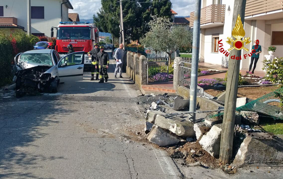 Alle 16.40 i vigili del fuoco sono intervenuti in via Borgo Tocchi a Rosà per un automobilista, che dopo aver perso il controllo della vettura ha abbattuto un muretto di un’abitazione e troncato un palo telecom, danneggiandone anche uno della pubblica illuminazione: ferito il conducente. Il 65 enne alla guida dell’auto è stato assistito dal personale del suem 118 e portato in ospedale prima dell’arrivo della squadra. I pompieri accorsi da Bassano hanno messo in sicurezza la Citroen C3 e transennato la zona per l’intervento dei tecnici per la messa in sicurezza dei pali. Le operazioni di soccorso dei vigili del fuoco sono terminate dopo circa un’ora.