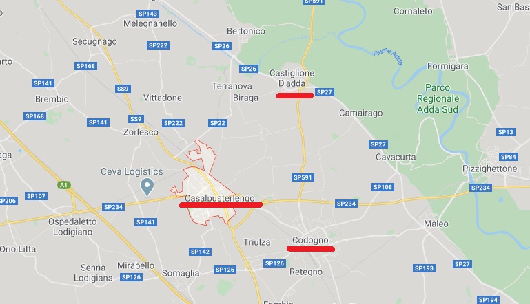 I COMUNI INTERESSATI – I tre Comuni – Castiglione d’Adda, Codogno e Casalpusterlengo – si trovano nel sud della Lombardia, nel basso lodigiano, a una ventina di minuti di auto da Piacenza e circa un’ora da Milano. Nel dettaglio, Codogno è comune di circa 16mila abitanti. È la seconda città più popolata della provincia di Lodi, in Lombardia. Castiglione d’Adda è un comune italiano di 4.600 abitanti della provincia di Lodi. Casalpusterlengo è un comune di oltre 15mila abitanti, sempre in provincia di Lodi.