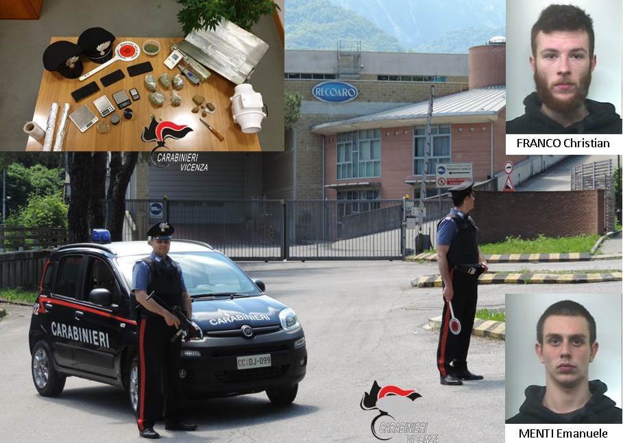 I Militari nella serata del 18.01.2020 hanno fermato il veicolo condotto C.A. diciottenne Recoarese, già noto alle forze dell’ordine per attività connesse agli stupefacenti, a bordo del veicolo vi erano anche una ragazza appena maggiorenne e FRANCO Christian, tutti noti assuntori di sostanze psicotrope della zona. La pattuglia, con rinforzo di altro personale, procedeva alla perquisizione dell’autovettura e degli occupanti. Le attività di ricerca permettevano di reperire sui due passeggeri modiche dosi di stupefacenti (Hashish e Marjiuana), mentre sul conducente C.A. venivano trovati gr.11,5 di Marjiuana ed un coltello a serramanico.