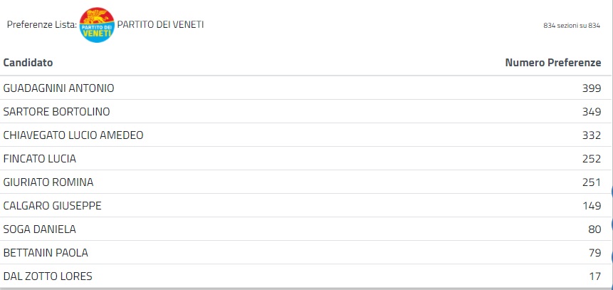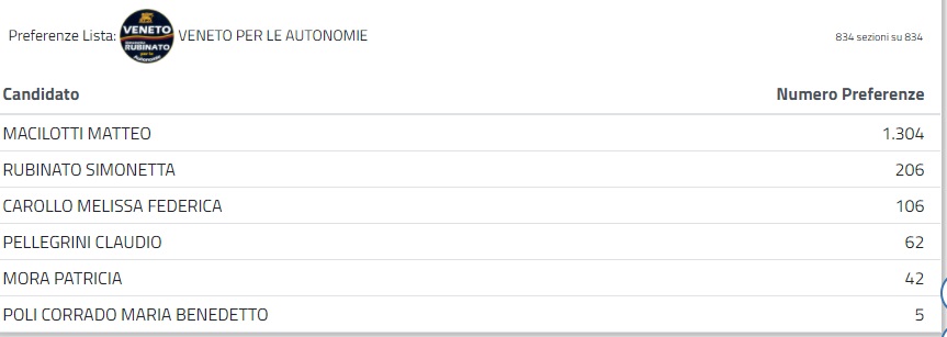Sarà un consiglio con due grandi gruppi. Il risultato di Zaia ha portato all’esclusione del Movimento 5 Stelle e di altre 5 liste. Fra queste emerge il voto al sindaco di Chiampo Matteo Macilotti, candidato con “Veneto per le autonomie” di Simonetta Rubinato, che pur perdendo, ottiene un risultato più che soddisfacente in termini di preferenze