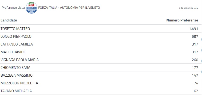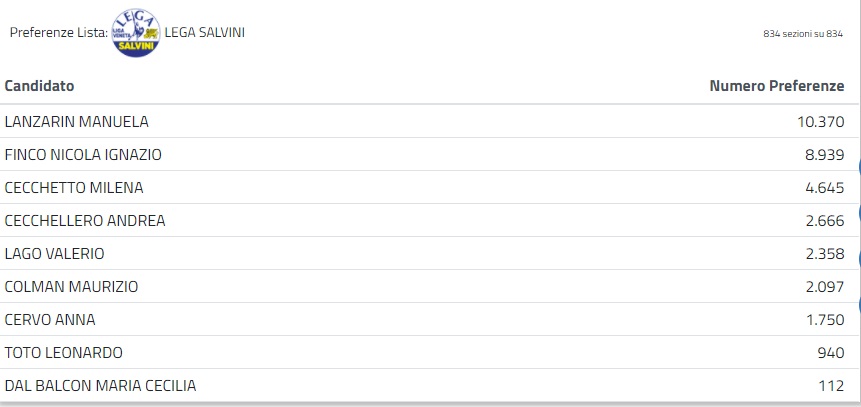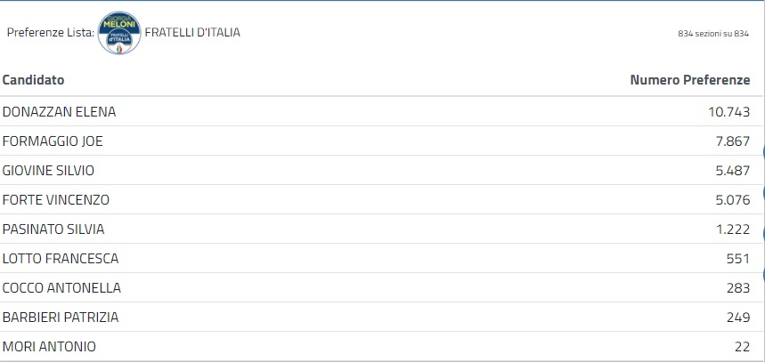 ELEZIONI – Tutte le preferenze nel Centrodestra vicentino – Le tabelle con i candidati e i voti