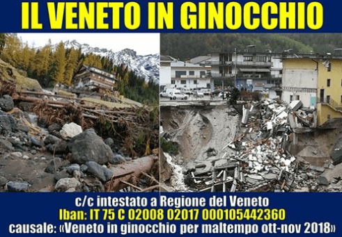 La causale è: “VENETO IN GINOCCHIO PER MALTEMPO OTTOBRE-
