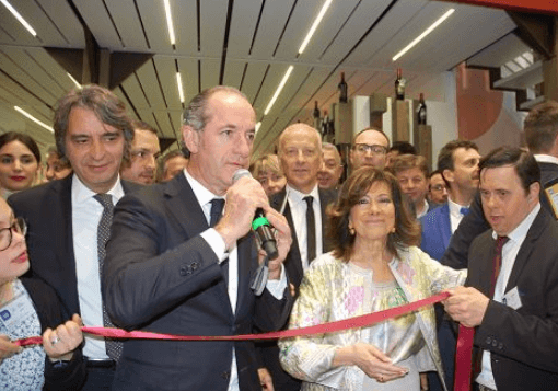 E’ un gigante produttivo da oltre 8 milioni di ettolitri, di cui oltre 2 milioni prodotti nelle aree vocate a Doc e Docg, nel 2017 il sistema vinicolo veneto, rappresentato idealmente dallo Stand della Regione al Vinitaly 2017, inaugurato oggi dal Presidente della Regione Luca Zaia, alla presenza di un ospite d’eccezione, come la Presidente del Senato Maria Elisabetta Casellati, che poco prima aveva ufficialmente dichiarata aperta la 52^ edizione del Vinitaly a Veronafiere. “Siamo i primi produttori d’Italia – ha ricordato Zaia – per quantità e per qualità, con un fenomeno come il Prosecco, che da solo vale oltre 4,5 milioni di quintali di uve coltivate e con volumi imbottigliati dalla sola Docg Conegliano Valdobbiadene di oltre 655 mila ettolitri”. Proprio la “storia” del Prosecco è stata anche l’occasione per una semplice ma significativa cerimonia, che si è svolta durante l’inaugurazione dello stand, per festeggiare i 150 anni di produzione dello straordinario vino da parte della Carpenè Malvolti, la prima cantina al mondo a produrre il Prosecco nel lontano 1868, la prima a riportare in etichetta il termine “Prosecco” nel 1924, la prima ad esportarlo e anche l’unica della spumantistica italiana che è della stessa proprietà, la famiglia Carpenè, da 150 anni. Proprio la famiglia Carpenè è stata particolarmente festeggiata allo Stand del Veneto, e ha consegnato al Presidente Zaia la bottiglia celebrativa del centocinquantenario.