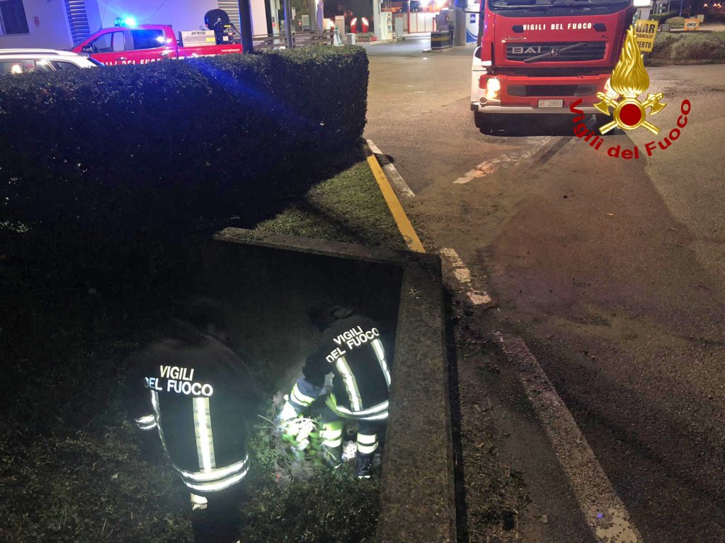 La notte scorsa, i vigili del fuoco sono intervenuti lungo la SP 246 in viale Stazione a Trissino per soccorrere un gatto rintanatosi in tubo di scolo dopo l’investimento da parte di un’automobilista, il quale ha dato l’allarme. Un operatore della squadra dei pompieri arrivata da Arzignano è entrato nel tubo di scolo lungo una ventina di metri riuscendo a catturare a metà della lunghezza del tubo il felino. L’animale è stato preso in consegna dallo stesso automobilista per essere portato a Vicenza in un centro di pronto soccorso veterinario H 24.