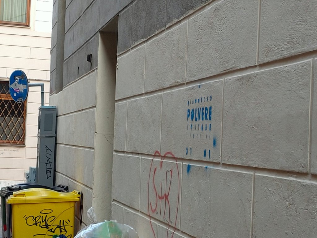 I quattro hanno utilizzato una mascherina di 50cmx50cm e dello spray per disegnare la scritta “Giammxoxo POLVERE YOUTUBE fuori il 31 01” sulla parere della chiesa in Stradella dei Filippini, al fine di promuovere, hanno dichiarato poi, l’uscita di un brano su youtube di cui sarebbero co-autori.