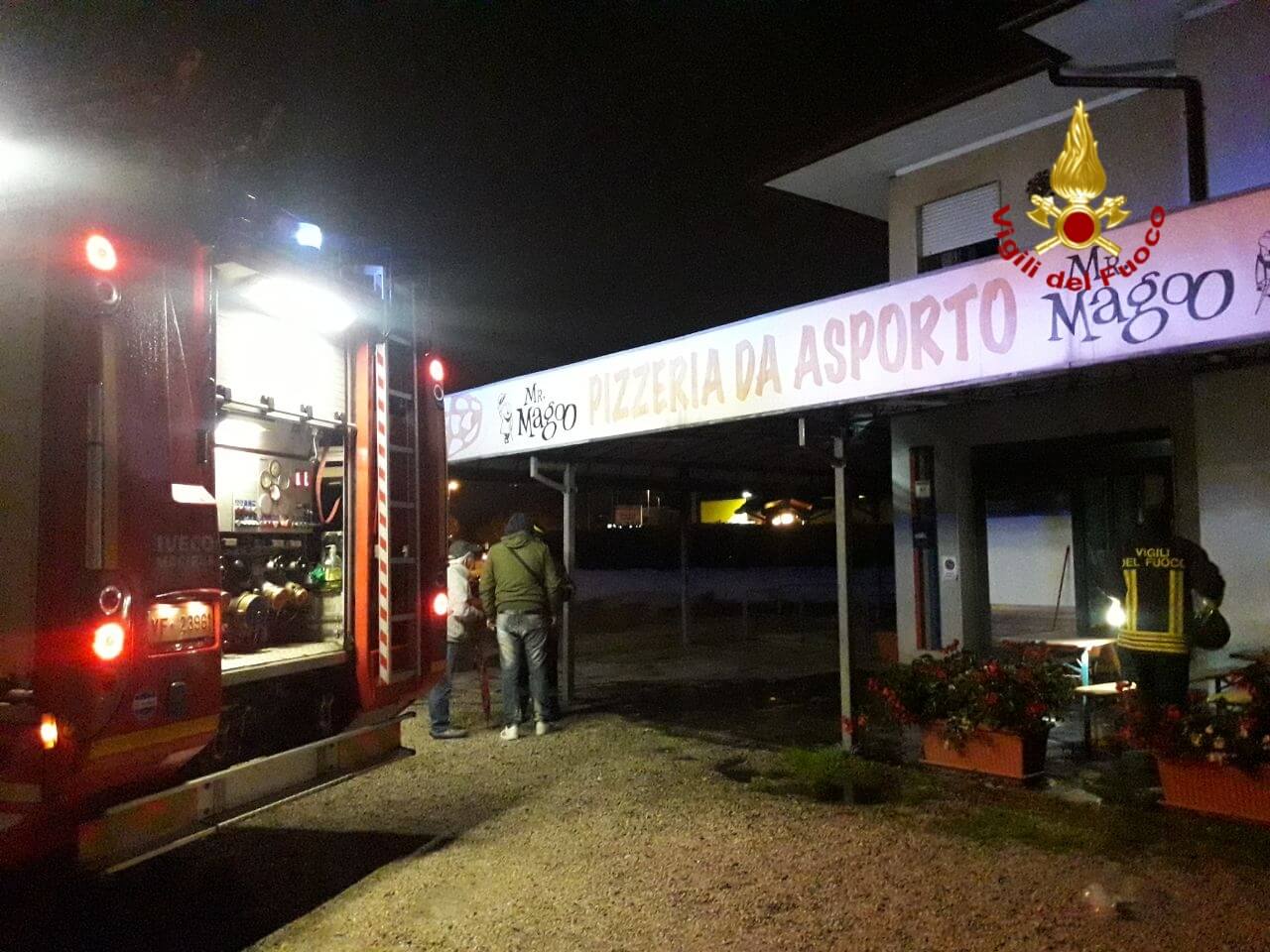 Lunedì sera poco prima delle 21, i vigili del fuoco sono intervenuti in via Monte Grappa a Rossano Veneto per del fumo che fuoriusciva dai locali di una pizzeria di asporto. L’esercizio commerciale era chiuso per turno di chiusura. I vigili del fuoco arrivati da Bassano e Cittadella sono entrati all’interno del locale completamente invaso dal fumo dotati di autorespiratori e termocamera. In breve gli operatori sono riusciti ad individuare l’origine del fumo nel motore del forno, che fa ruotare il piano cottura. Spento il principio d’incendio, si è provveduto con dei motoventilatori alla completa aereazione dei locali e al controllo di sicurezza e salubrità dell’appartamento sovrastante, che non ha subito nessun danno. Ingenti danni da fumo in tutto il locale della pizzeria. Le cause dell’incendio, al vaglio dei vigili del fuoco, sono presumibilmente riconducibili ad un’anomalia elettrica del motore. Le operazioni di soccorso dei vigili del fuoco sono terminate intorno alla mezzanotte.
