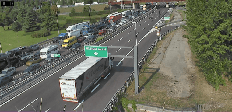 Il casello di Vicenza Ovest risulta chiuso in entrata per chi è diretto verso Venezia, mentre il traffico in uscita è fortemente rallentato.
