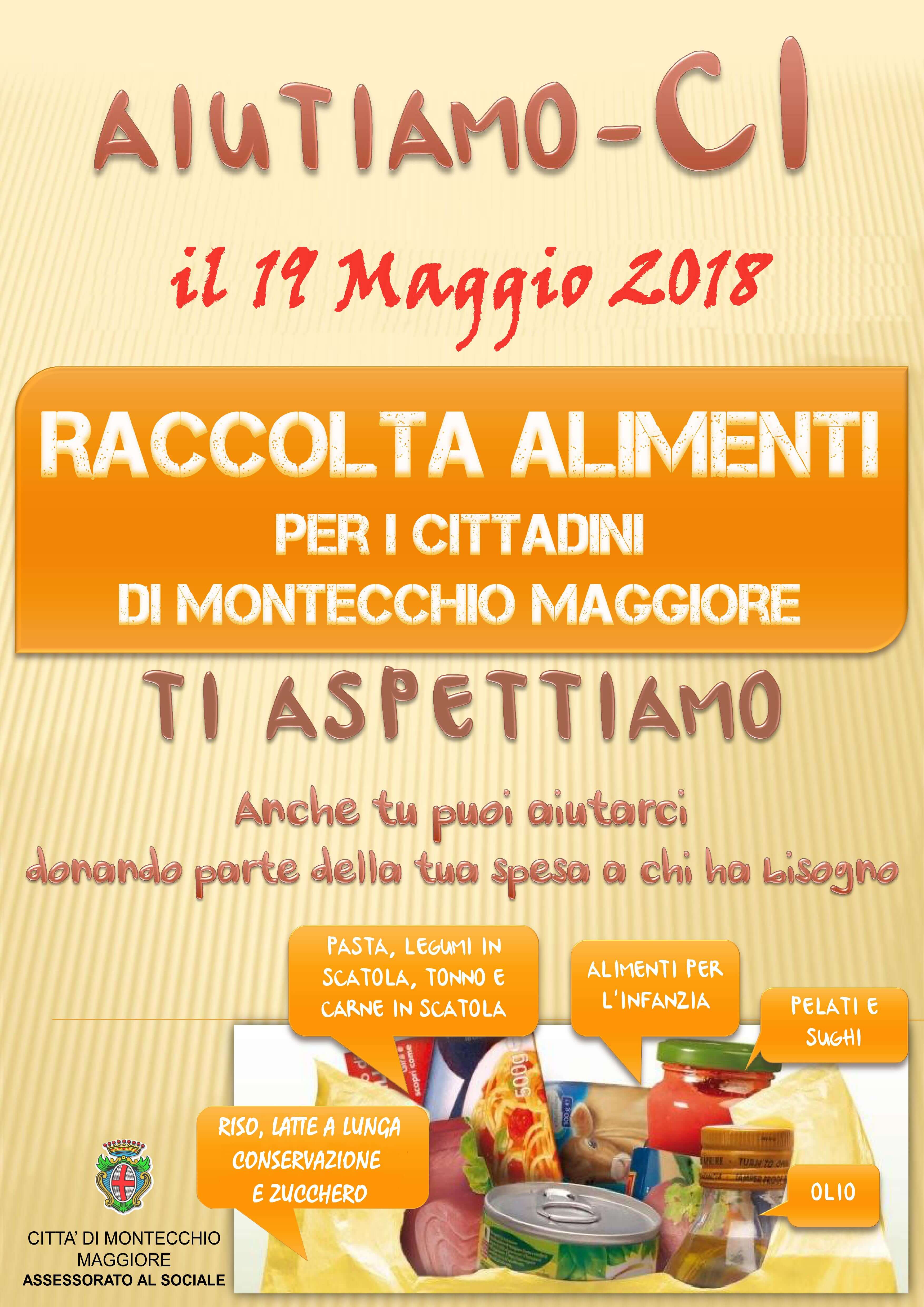 Edizione numero 10 per la raccolta alimentare “Aiutiamo-Ci” promossa dall’Assessorato al Sociale della Città di Montecchio Maggiore. L’appuntamento con questa nuova giornata all’insegna della solidarietà è sabato 19 maggio, quando i clienti dei supermercati Interspar, Alì, G.B. Ramonda e Tosano potranno consegnare parte della loro spesa alle decine di volontari coinvolti tra Gruppo Solidarietà, San Vincenzo, Alpini Alte e Montecchio Maggiore, Scout CNGEI e Agesci, Lions e Parrocchia di San Paolo.