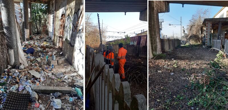 Cavalcavia Ferreto de Ferreti, oltre 300 chili di rifiuti rimossi. In vista della dell’installazione della rete che impedirà l’accesso a spacciatori, tossicodipendenti e prostitute