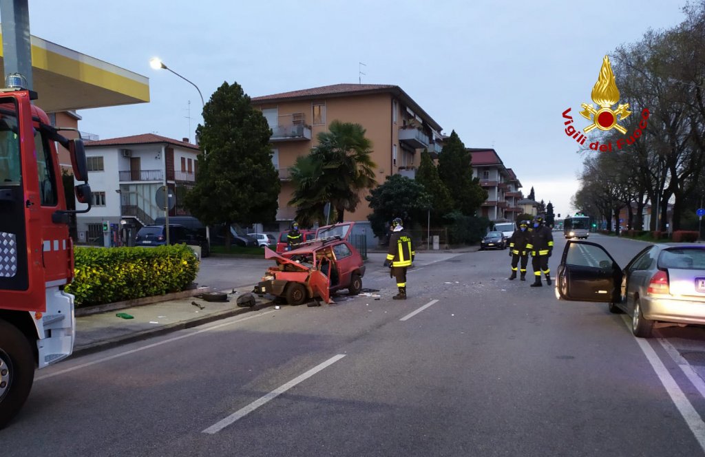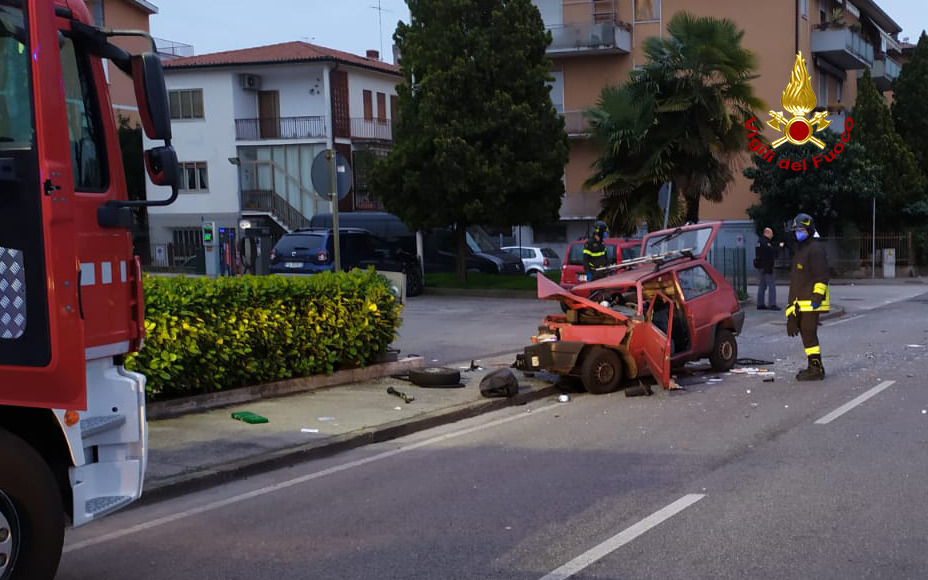 Alle 5:30 di venerdì, i vigili del fuoco sono intervenuti in via Ragazzi del 99 a Vicenza per lo scontro frontale tra due auto: due feriti. La squadra ha messo in sicurezza i mezzi e liberato con il personale del SUEM l’autista 65 enne, rimasto bloccato all’interno della Fiat Panda completamente deformata. L’uomo è stato stabilizzato dal personale sanitario e trasferito in ambulanza in ospedale. Ferito in maniera più lieve anche l’autista della Honda Civic pure lui portato in pronto soccorso  da un’altra ambulanza. La polizia di stato ha segnalato e deviato il traffico durante i soccorsi, mentre i rilievi sono stati eseguiti dalla polizia locale. Le operazioni di soccorso dei vigili del fuoco sono terminate dopo un’ora circa.