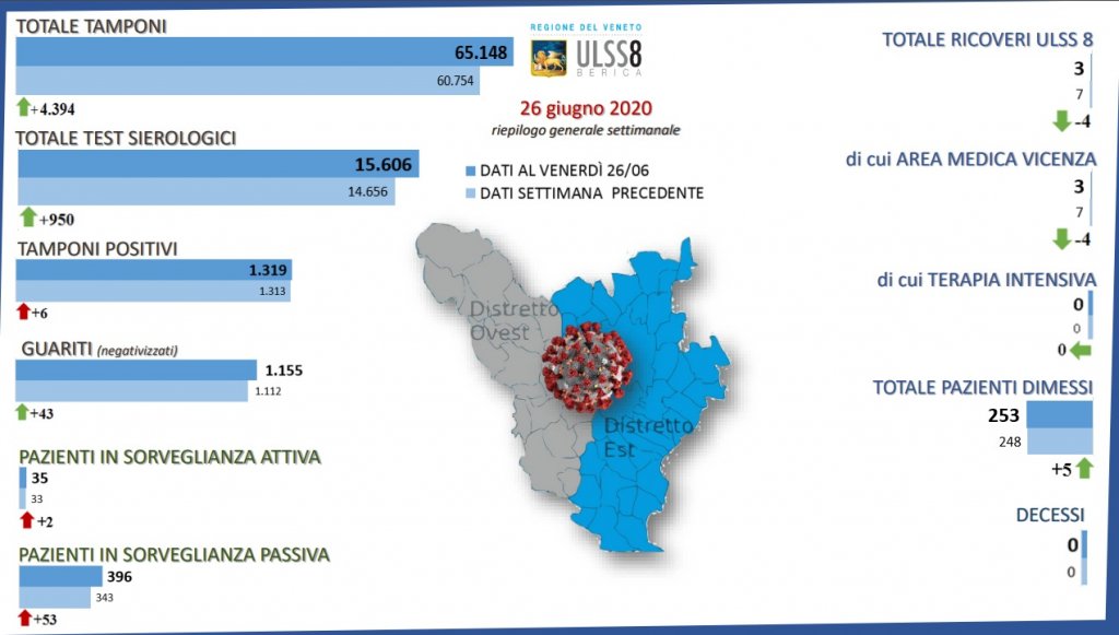 Ecco la scheda dell’Ulss 8 Berica che riassume l’andamento dell’ultima settimana