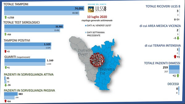 Ulss Berica – Bilancio settimanale covid: 5 positivi e 1 terapia intensiva