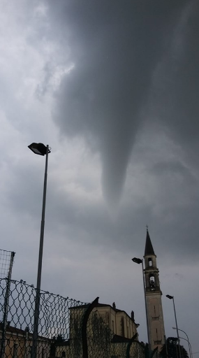 Almeno 3 funnel cloud (nube a imbuto) si sono avvistati poco fa nel Vicentino in serata: due due da Costabissara verso Vicenza e il terzo da Quinto Vicentino (foto di Patrizia Caldini). Come riferisce Serenissima Meteo, in quest’ultimo caso la circolazione vorticosa ha, per alcuni istanti, interessato anche il suolo, in prossimità di un’officina in Via XX Settembre.