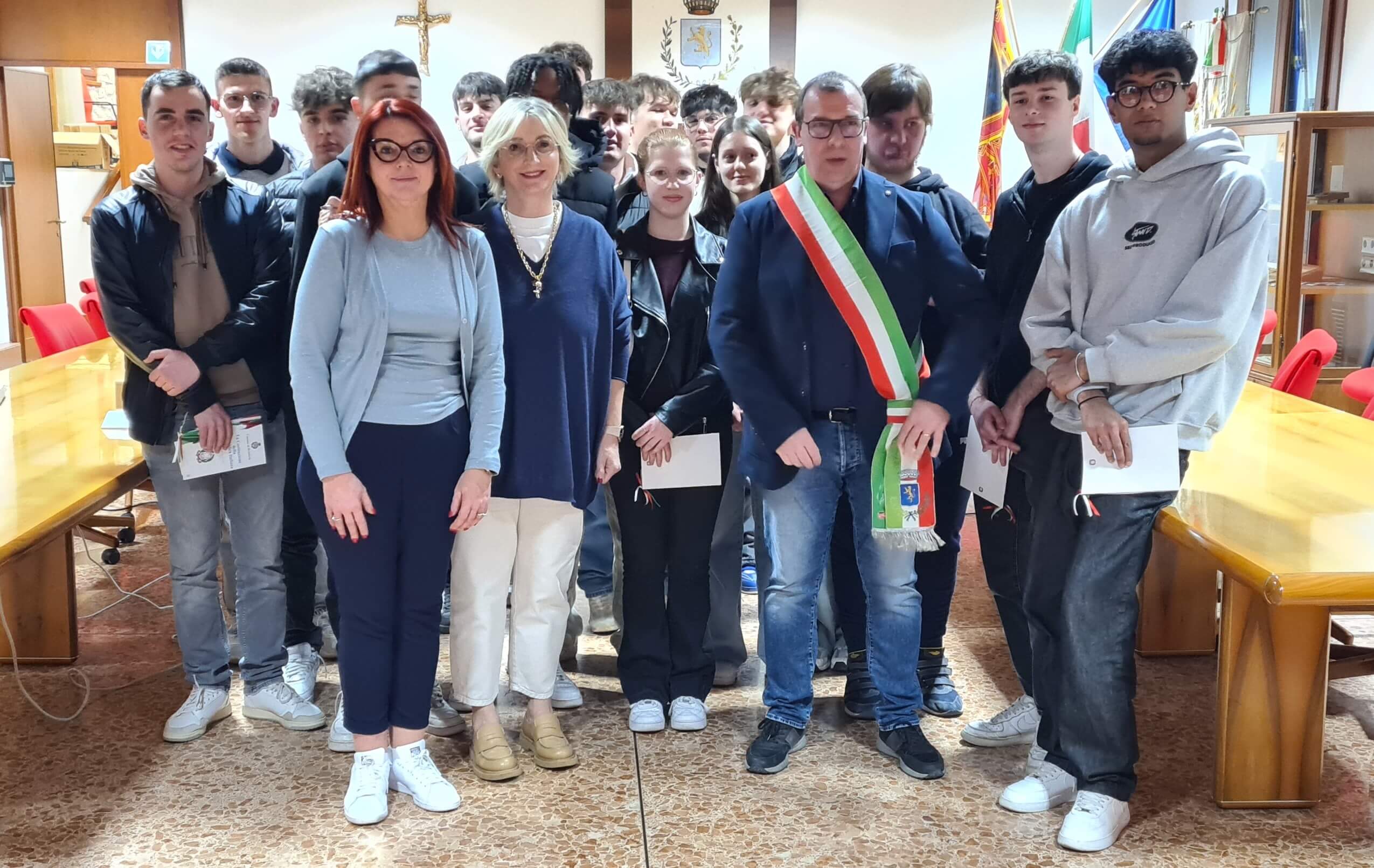 La sala consiliare del Municipio ha ospitato venerdì 11 aprile la cerimonia di consegna, da parte del sindaco Bruno Beltrame, di una copia della Costituzione Italiana ai neodiciottenni che hanno raggiunto la maggiore età nell’anno 2024. Un momento di incontro e di conoscenza, promosso dall’Amministrazione comunale, al quale sono intervenuti il primo cittadino Bruno Beltrame, il vice sindaco Alessandra Stenco e l’assessore al Sociale Gloria Dal Ferro.