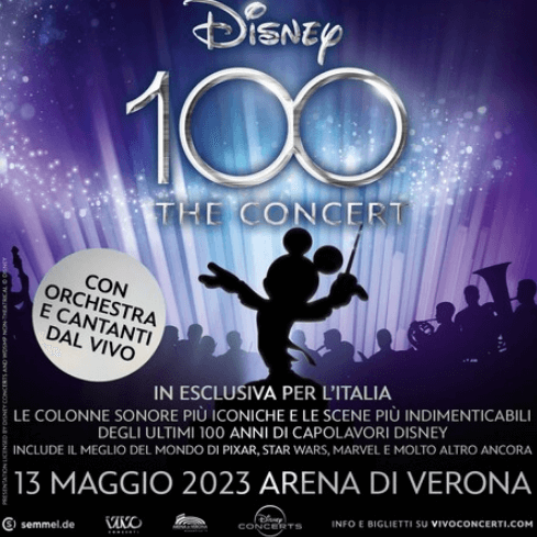 L’unica tappa italiana del DISNEY 100 – THE CONCERT si terrà all’Arena di Verona sabato 13 maggio 2023 alle ore 21:00.