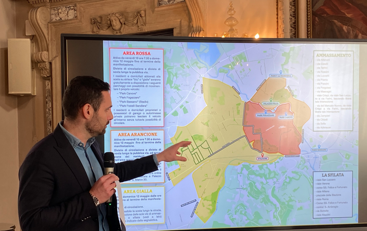 | Nei tre giorni dell’Adunata nazionale Alpini 2024, il 10, 11 e 12 maggio, la città si prepara ad accogliere 400 mila persone, impegnandosi ad offrire servizi all’altezza dell’evento che si profila come uno dei più significativi del 2024 in Italia.La viabilità subirà importanti modifiche, necessarie per garantire lo svolgimento in sicurezza della manifestazione.A tal fine la zona interessata dalla manifestazione è stata suddivisa in tre aree contraddistinte da altrettanti colori: l’area rossa, corrispondete al centro storico dentro le mura, dove risiedono 7.390 persone corrispondenti a 4.070 nuclei familiari; l’area arancione, tra il centro storico e viale D’Alviano, Rodolfi e Margherita, dove sono residenti 4.040 persone per un totale di 2.020 nuclei familiari; l’area gialla, nella parte ovest e sud ovest della città, abitata da circa 20.000 residenti pari a 9.500 nuclei familiari.Ad illustrare le modifiche alla viabilità c’erano oggi in sala Stucchi l’assessore ai grandi eventi Leone Zilio, il presidente della sezione ANA di Vicenza Lino Marchiori e per Adunata Alpini 2024 srl, il coordinatore della sicurezza e direttore dei lavori Danilo Spataro (in collegamento) e il vicepresidente Marco Zocca.«L’Adunata nazionale Alpini 2024 è un evento straordinario, numericamente il più importante dell’anno in Italia e pertanto ci stiamo preparando per affontare in modo adeguato l’arrivo di 400 mila persone attraverso la predisizione di misure straordinarie – ha spiegato l’assessore ai grandi eventi Leone Zilio -. In particolare dal punto di vista viabilistico siamo costretti a chiedere collaborazione a residenti, commercanti, lavoratori che quotidianamente vivono il centro storico e le aree circostanti. Nei tre giorni di adunata abbiamo predisposto divieti di circolazione e sosta che andranno inevitabilmente ad incidere sulle abitudini delle persone e delle famiglie. Il suggerimento è di considerare l’evento come una vera e propria occasione per vivere la città in modo diverso perchè in quesi giorni sarà piena di vita, le strade saranno popolate da tantissime penne nere e ci saranno tante iniziative. La si potrà vedere come mai l’abbiamo vista, decorata da ben 26 mila bandiere tricolore. Per chi avesse comunque necessità di spostarsi invito a consultare le informazioni sul sito del Comune e la mappa con le tre aree interessate dalla manifestazione».«Abbiamo lavorato intensamente con il Comune di Vicenza e la Questura, che voglio personalmente ringraziare non solo per la competenza e professionalità, ma anche per l’entusiasmo e la partecipazione dimostrata – ha commentato il coordinatore della sicurezza e direttore dei lavori di Adunata Alpini 2024 srl Danilo Spataro – . Nel definire le aree con divieto di circolazione e sosta siamo partiti da quello che i cittadini già conoscono come il perimetro delle domeniche ecologiche. E’ chiaro però che, data la portata dell’evento, in nome di logistica e sicurezza ci siamo dovuti allargare, sia come superficie che come durata nel tempo. Invitiamo tutti i vicentini a partecipare alla nostra festa”.La parte del centro storico maggiormente interessata dalla manifestazione e, quindi, dalla presenza di ospiti e visitatori, viene identificata come area rossa. Qui da venerdì 10 maggio alle 7 fino al termine della manifestazione nella serata di domenica 12 maggio ai veicoli (auto, moto, motorini) sarà vietato circolare e sostare: dovranno infatti essere lasciate libere tutte le strade della zona, da qualsiasi tipologia di veicolo in sosta. I residenti e domiciliati abbonati alla sosta sulle strisce “blu” o “gialle” avranno a disposizione con lo stesso abbonamento i parcheggi “Canove” e “Fogazzaro”, entrambi in zona “rossa”, raggiungibili attraverso uno specifico percorso, e i parcheggi “Bassano”(Stadio) e “Fratelli Bandiera” (accanto al supermercato). Durante i tre giorni di manifestazione non sarà possibile spostare i veicoli dalle aree di sosta interne o autorimesse e garage.Anche nell’area arancione, corrispondente alla parte nord del centro storico, tra il fiume Bacchiglione e l’anello dei viali (viale D’Alviano, via Fratelli Bandiera, via Rodolfi, via Ceccarini, via Legione Gallieno, viale Margherita) da venerdì 10 maggio alle 7 fino al termine della manifestazione nella serata di domenica 12 maggio è previsto il divieto di circolazione e di sosta dei veicoli. In quest’area, però, i soli residenti potranno circolare e sostare, anche lungo strada, richiedendo il contrassegno (dove sarà indicato il numero di targa) alla sede dell’Adunata a Palazzo Folco, in contra’ S. Marco 30 oppure online, a partire dalle prossime settimane.Nell’area gialla (a ovest e sud ovest della città), infine, dalle 6 di domenica 12 maggio fino al termine della manifestazione non sarà possibile circolare per consentire l’ammassamento e l’avvio della sfilata, lo scioglimento e l’allontanamento dei partecipanti.I residenti e domiciliati non potranno spostare i veicoli. La sosta su strada sarà vietata solo nelle vie di ammassamento e sfilata e in altre vie indicate dalla segnaletica, funzionali alla manifestazione. Deroghe al divieto di circolazioneNelle aree rossa, arancione e gialla è previsto un numero limitato di eccezioni al divieto di circolazione, per garantire la sicurezza della manifestazione. Potranno transitare i mezzi di soccorso e quelli appartenenti a corpi di polizia e corpi militari dello Stato; i mezzi di aziende e istituti che svolgono servizio di reperibilità urgente per il funzionamento di pubblici servizi e infrastrutture pubbliche, purché riconoscibili da colori o scritte d’istituto, i taxi, i mezzi di igiene ambientale e del trasporto pubblico locale, quelli dell’Ulss 8 Berica per assistenza domiciliare. Inoltre dalle 4 alle 7 potranno circolare i mezzi a servizio del trasporto merci per negozi e attività di somministrazione cibo e bevan