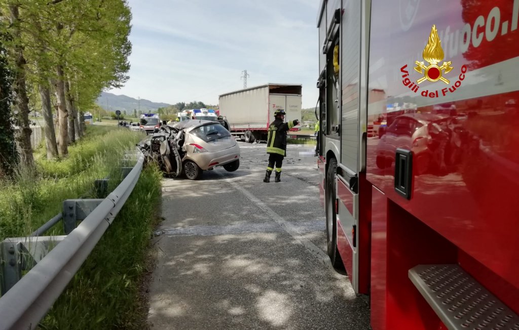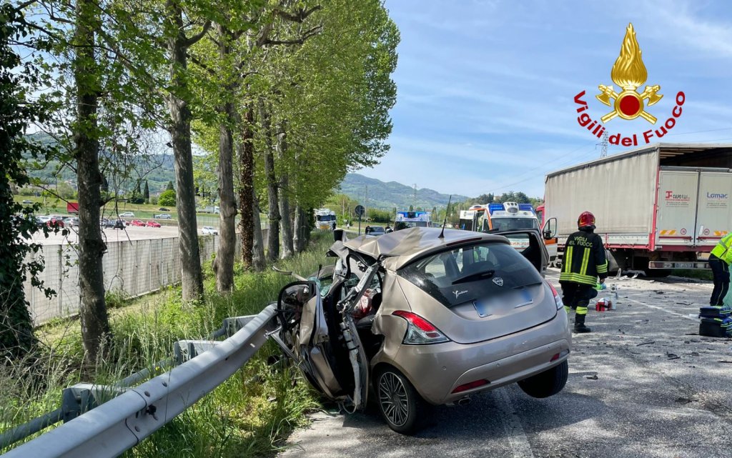 A mezzogiorno di giovedì, i vigili del fuoco sono intervenuti lungo la SP 1 in Via Vicenza ad Arzignano per un incidente stradale semi frontale tra un autocarro e un’auto: deceduta l’automobilista, una donna di 43 anni di Montecchio Maggiore (C.V.). I pompieri accorsi da Arzignano, hanno messo in sicurezza i mezzi ed estratto dalla Lancia Y, finita dopo lo scontro contro il guardrail, la conducente. La donna è stata a lungo rianimata dai sanitari del Suem, arrivati anche con l’elisoccorso, purtroppo il medico ha dovuto dichiarare la morte della 43 enne. Illeso, ma sotto shock l’autista dell’autocarro. La polizia locale e i carabinieri hanno deviato il traffico, la strada al momento ancora chiusa per ultimare i rilievi del sinistro. Le operazioni di soccorso dei vigili del fuoco sono terminate alle 13:30.
