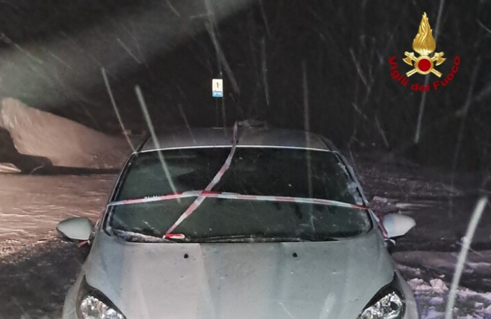 Rimangono bloccati con l’auto che non va più nella bufera di neve, ad un chilometro dalla vetta di Cima Grappa, nel comune di Borso del Grappa.