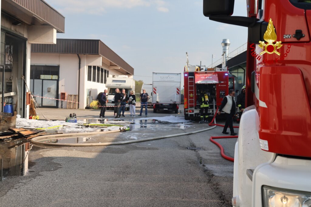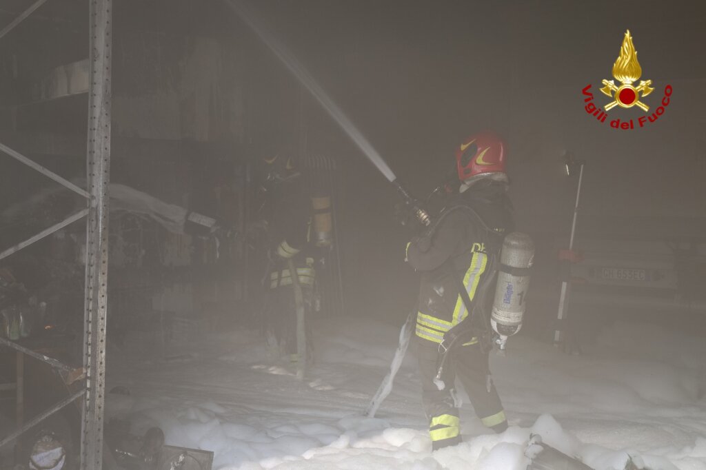 L’incendio ha completamente distrutto l’arredo e il materiale depositato all’interno dell’azienda, mentre il denso fumo ha invaso anche le due aziende adiacenti, che condividono la stessa struttura del capannone, causando ulteriori disagi.