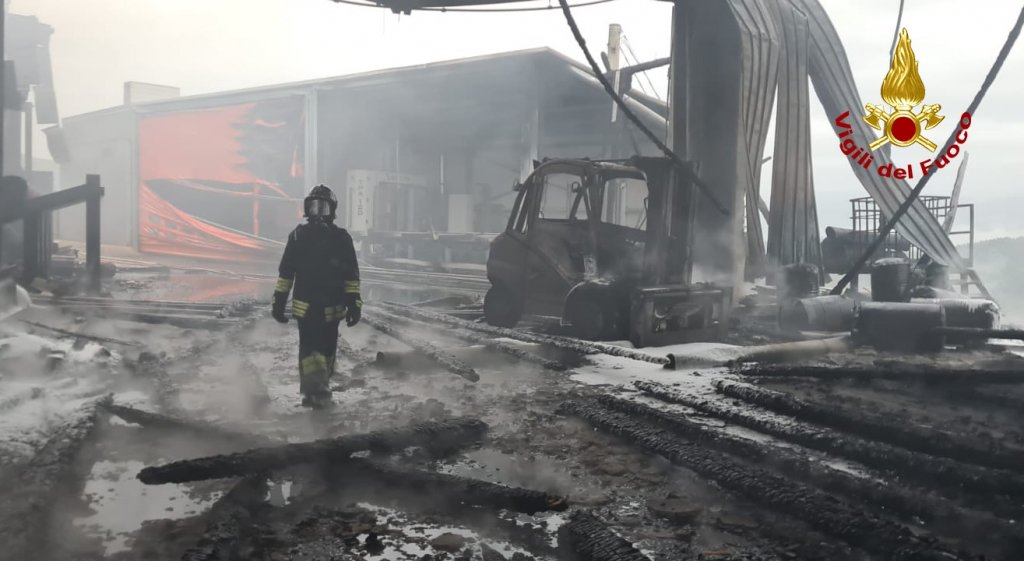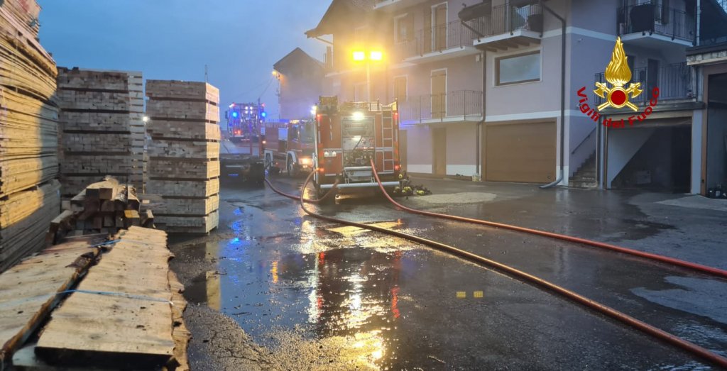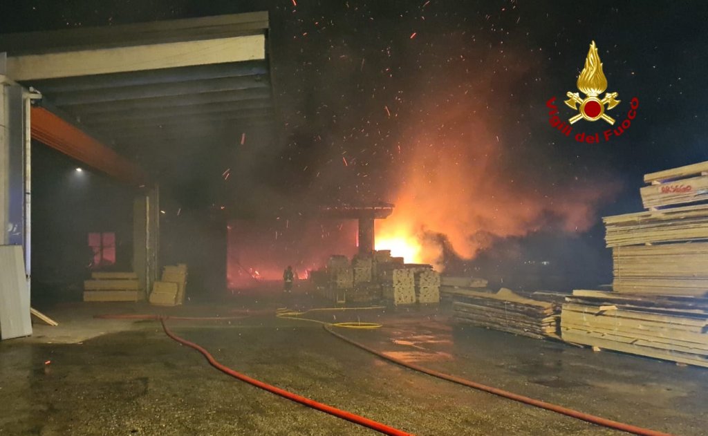 Falegnameria a fuoco nella notte: i pompieri spengono il rogo (VIDEO)