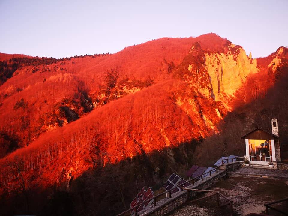 Avete presente quando vi trovate davanti a qualcosa di assolutamente incredibile? Uno spettacolo offerto dalla natura che sembra quasi un miraggio? Qualcosa di così strano che manco potevate concepirlo e di colpo siete lì, a vedere, vivere, assaporare quel momento che i Romantici definivano con il termine “Sublime”. Ecco: Questa mattina tutto ciò è avvenuto dinanzi agli occhi stupiti del gestore del Rifugio Bertagnoli in località La Piatta di Crespadoro. Alessandro Giambellini ha immortalato quel momento, senza filtro alcuno, e l’ha condiviso sui social, creando così un tam-tam di quelle foto che raccontano di una straordinaria alba rosso-fuoco proprio davanti al Rifugio dedicato al mitico Bepi Bertagnoli. Giambellini fotografa quasi quotidianamente l’alba su in Piatta, per rendere partecipi tutti i follower e gli appassionati di montagna del momento magico. E di albe meravigliose se ne vedono spesso lassù, ma mai come questa di stamattina.