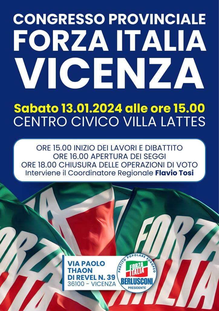 Stamane è stata depositata la candidatura di Pierantonio Zanettin a Coordinatore Provinciale di Forza Italia VICENZA per il congresso provinciale di sabato 13 gennaio che si terrà presso il centro Civico Villa Lattes dalle 15.00.