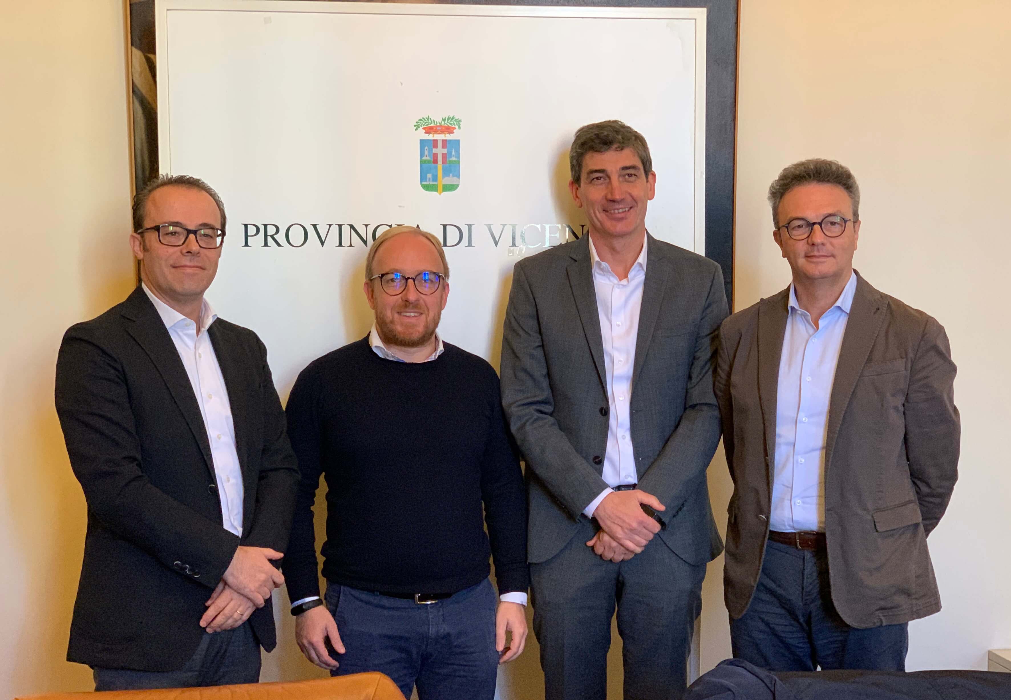 Nella foto: il Sindaco di Zermeghedo, Luca Albiero, il Delegato provinciale all’ambiente, Matteo Macilotti, il Sindaco di Montebello Vic, Dino Magnabosco, e il Presidente di Medio Chiampo S.p.A., Giuseppe Castaman.
