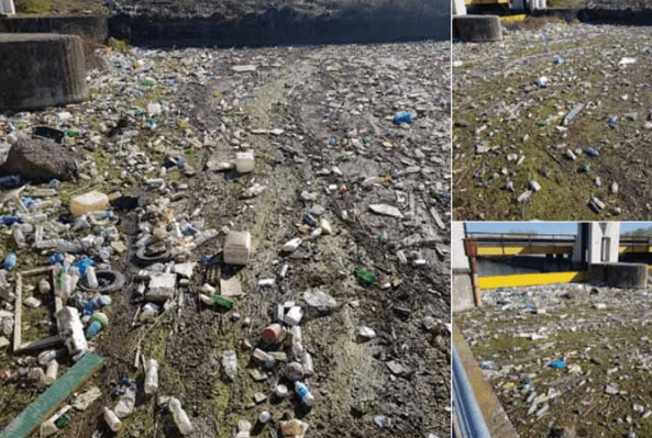 Il fiume Po è irriconoscibile: secco e pieno di plastica