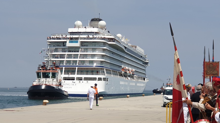 La Viking attracca: grandi navi via da Venezia approdano a Chioggia, che festeggia
