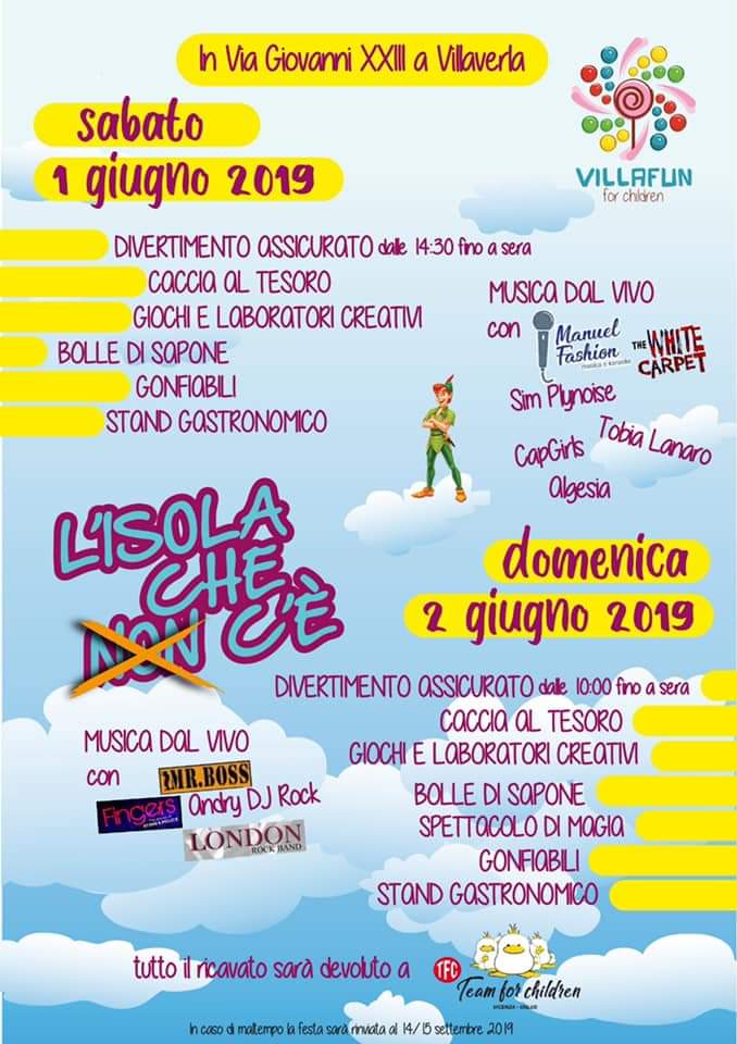 I bambini saranno catapultati nel mondo di Peter Pan. Questo l’evento organizzato per il primo weekend di giugno a Villaverla da Villafun. “L’Isola che (non) c’è” è l’appuntamento che tutti i bambini stavano aspettando, un’occasione unica, in cui i sogni diventano realtà.