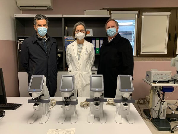 «Questi strumenti – spiega la dott.ssa Sandra Radin, direttore dell’U.O.C. di Oculistica – si utilizzano per la “lettura” delle lenti, ovvero per capire la tipologia e la gradazione delle lenti che stanno utilizzando i pazienti. Naturalmente avevamo già in reparto uno strumento di questo tipo, ma era in condivisione tra più ambulatori: ora ciascun ambulatorio disporrà del proprio focometro e questo semplificherà sicuramente le attività. Ringrazio i signori Franco Bonin e Luisa Nardi, che dirigono l’azienda insieme al figlio Francesco, per questa generosa iniziativa».