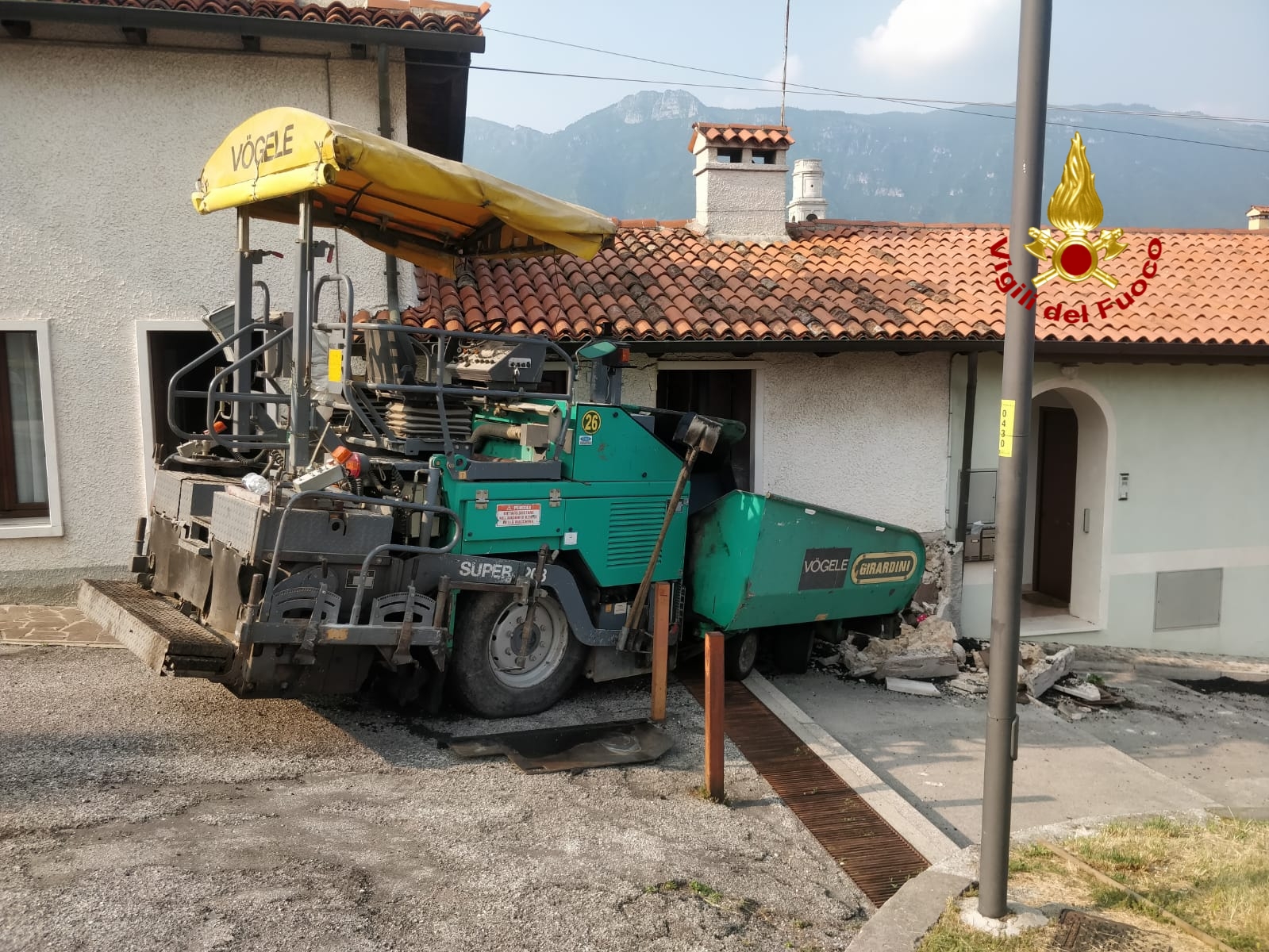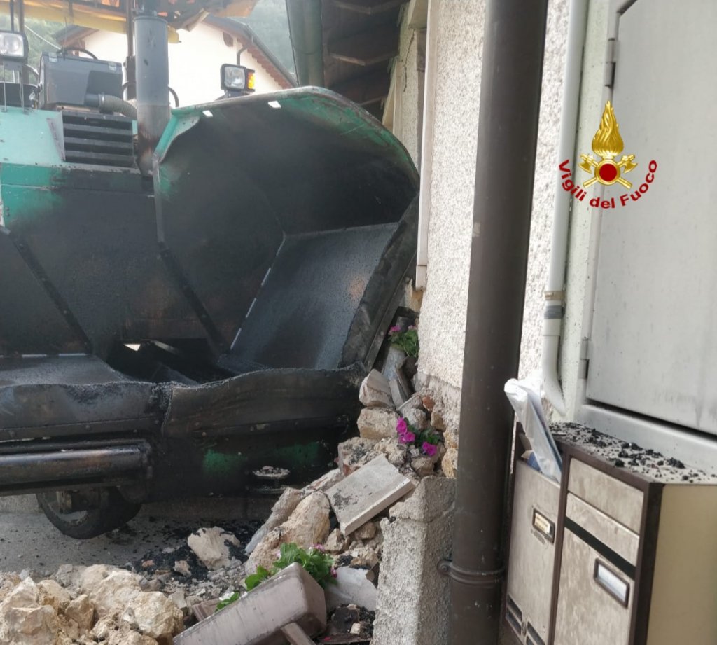 Macchina asfaltatrice contro casa: gravi danni (foto)