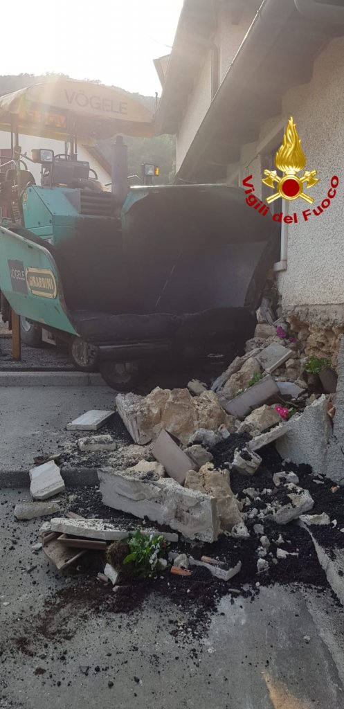 Poco dopo le ore 17, i vigili del fuoco sono intervenuti in via Vicolo San Vito a Piovene Rocchette per delle lesioni alla struttura portante di un’abitazione causate da una macchina operatrice adibita all’asfaltatura. Il mezzo fuori controllo probabilmente per un guasto meccanico è andato a urtare contro la casa causando gravi danni strutturali all’edificio. Nessuna persona è rimasta ferita. La squadra dei pompieri arrivata da Vicenza, ha effettuato un primo sopralluogo, disponendo l’interdizione dell’accesso della casa per i danni causati dal mezzo d’opera. Necessaria un’opera di consolidamento della struttura prima di spostare il mezzo. Al momento dell’incidente nessuna persona si trovava in casa. Le operazioni di soccorso dei vigili del fuoco sono ancora in atto.