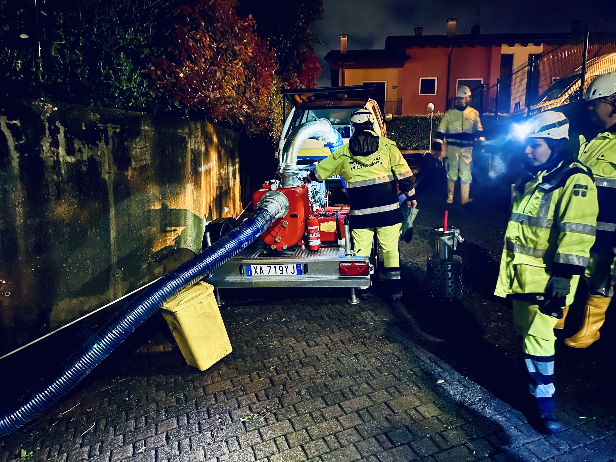 Maltempo, due squadre di Acque del Chiampo all’opera ieri notte per liberare dall’acqua cantine e seminterrati a Restena