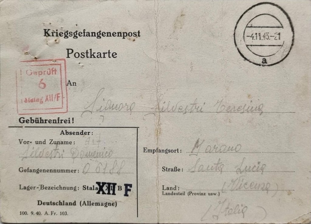 È stata ritrovata e consegnata 80 anni dopo, una cartolina della seconda guerra mondiale destinata a una maranese, Teresa Zaltron, e inviata nel 1943 dal marito, Domenico Silvestri, allora internato in un campo di lavoro in Germania.