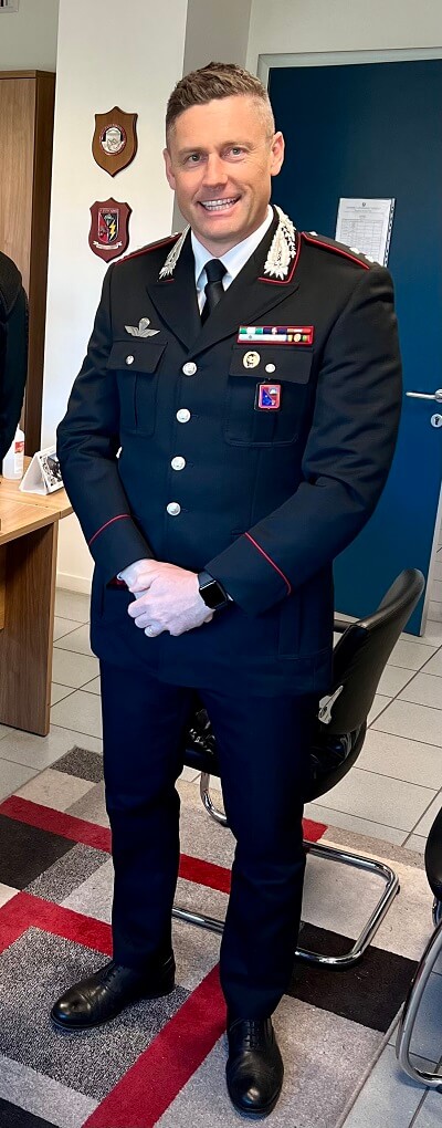 L’Ufficiale ha 41 anni, di cui diciassette trascorsi nelle forze armate, una laurea magistrale in Scienze della Sicurezza Interna ed Esterna conseguita presso la facoltà di Giurisprudenza dell’Università di Roma Tor Vergata e un Master di II° livello in Geopolitica della Sicurezza.