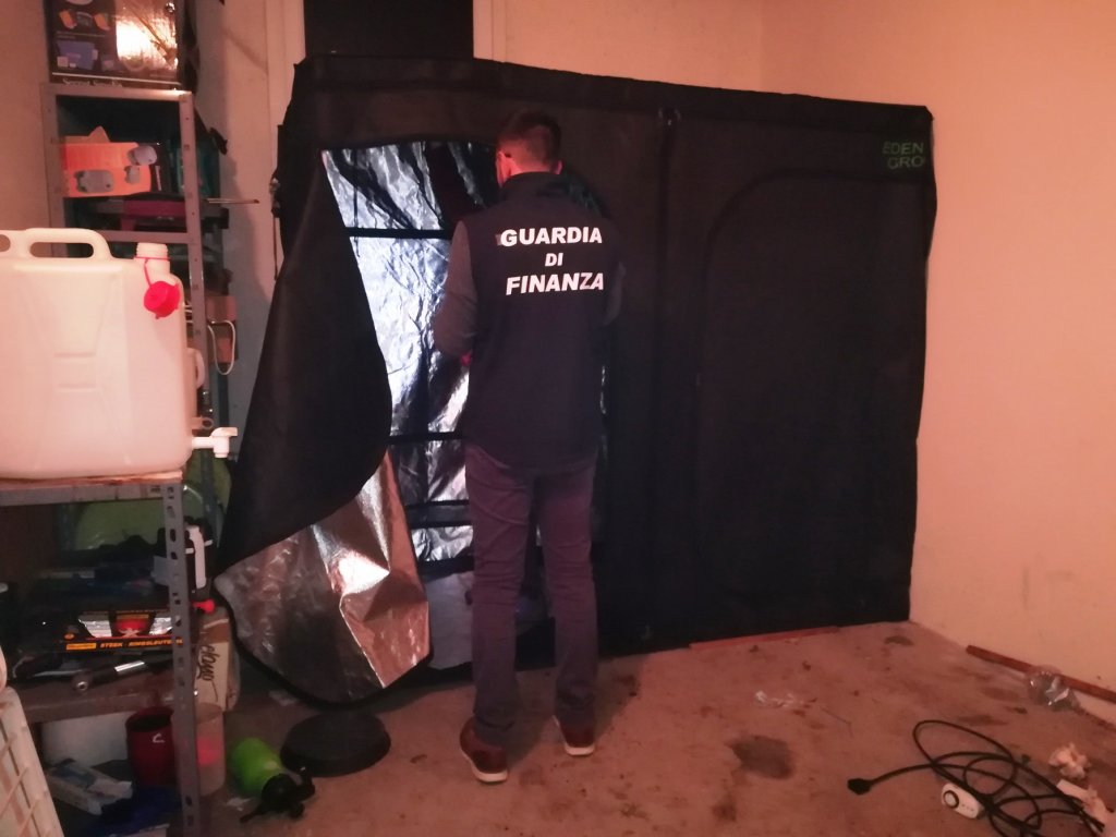 Individuato il proprietario del garage in cui risultava probabilmente custodita la sostanza (G. V., 48 anni) e fatta una perquisizione d’iniziativa, i militari hanno trovato una vera e propria “serra fai da te” per la coltivazione di marijuana, formata da una struttura impermeabile dotata di sistema di ventilazione, luci e strumentazione per la rilevazione della temperatura, il tutto in funzione. Dentro la serra, i finanzieri hanno trovato due piante di cannabis di media altezza, su cui erano sin da subito visibili le tipiche infiorescenze della marijuana.