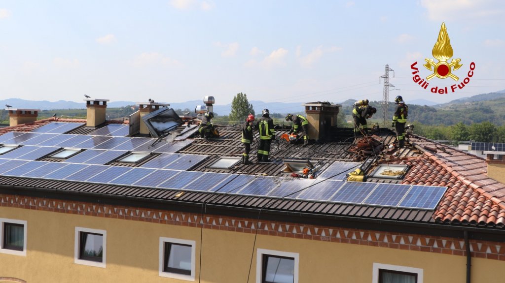 OVEST VICENTINO – Incendio sul tetto dell’hotel: a fuoco pannelli fotovoltaici (video e foto)