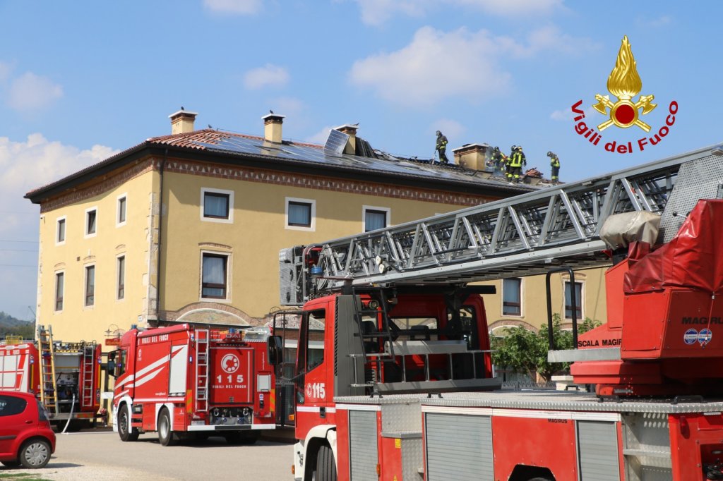 Dalle 14:00, i vigili del fuoco stanno operando presso l’hotel Fracanzana a Montebello Vicentino per un incendio pannelli fotovoltaici divampato sul tetto della struttura: nessuna persona è rimasta ferita. Notevole la colonna di fumo alzatasi nelle prime fasi, ben visibile dall’attigua autostrada con decine e decine di chiamate degli automobilisti alla sala operativa del 115. I pompieri arrivati da Lonigo, Vicenza, Caldiero e Verona con 3 autopompe, un’autobotte, 2 autoscale e 20 operatori, coadiuvati dal funzionario di guardia, sono riusciti a circoscrivere le fiamme, evitando un incendio generalizzato che si poteva estendere a tutta la copertura e le strutture annesse. Le fiamme hanno interessato circa 30 mq di copertura e sottotetto della parte della costruzione dell’hotel più alta. Sono ora in corso le operazioni di bonifica e le valutazioni tecniche per determinare le cause delle fiamme.