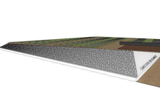 Per la predisposizione dell’area sono previsti l’asportazione del terreno di inumazione fino a circa 1 metro e 80 centimetri di profondità, il rinterro con terreno adatto, l’innalzamento del livello di campagna di circa 50 centimetri come da normativa, il drenaggio, la realizzazione di aiuole a prato e di una siepe e l’allestimento di un impianto d irrigazione.