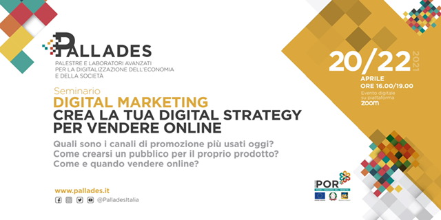 Martedì 20 e giovedì 22 aprile alle 16.00 Fabrizio Ronca, innovatore Digitale & Creator, continuerà il percorso con un seminario, in due parti, sul Digital Marketing, spiegando ai titolari e ai dipendenti delle micro-imprese e delle PMI le varie strategie per definire e migliorare la loro presenza sui canali digitali, con l’obiettivo di migliorare la vendita online. Nello specifico, spiegherà cos’è una Digital Strategy, l’Audience & Buyer Personas, il Digital Funnel & Costumer Journey, il piano creativo di lancio, i suoi modelli e la Conversion & Sales.