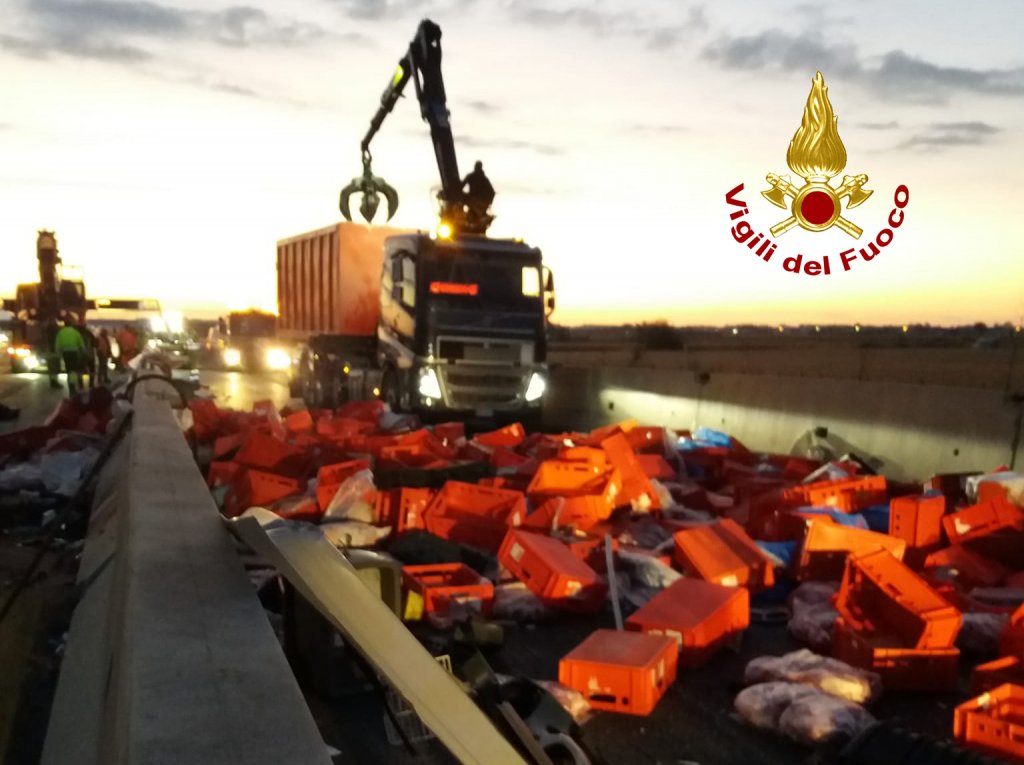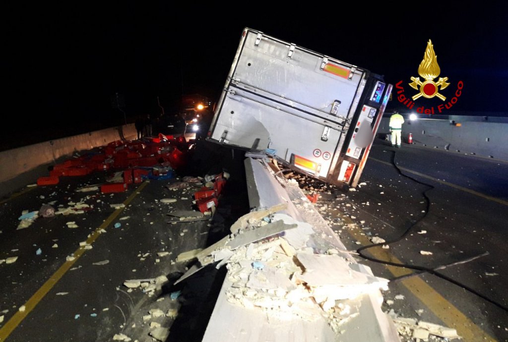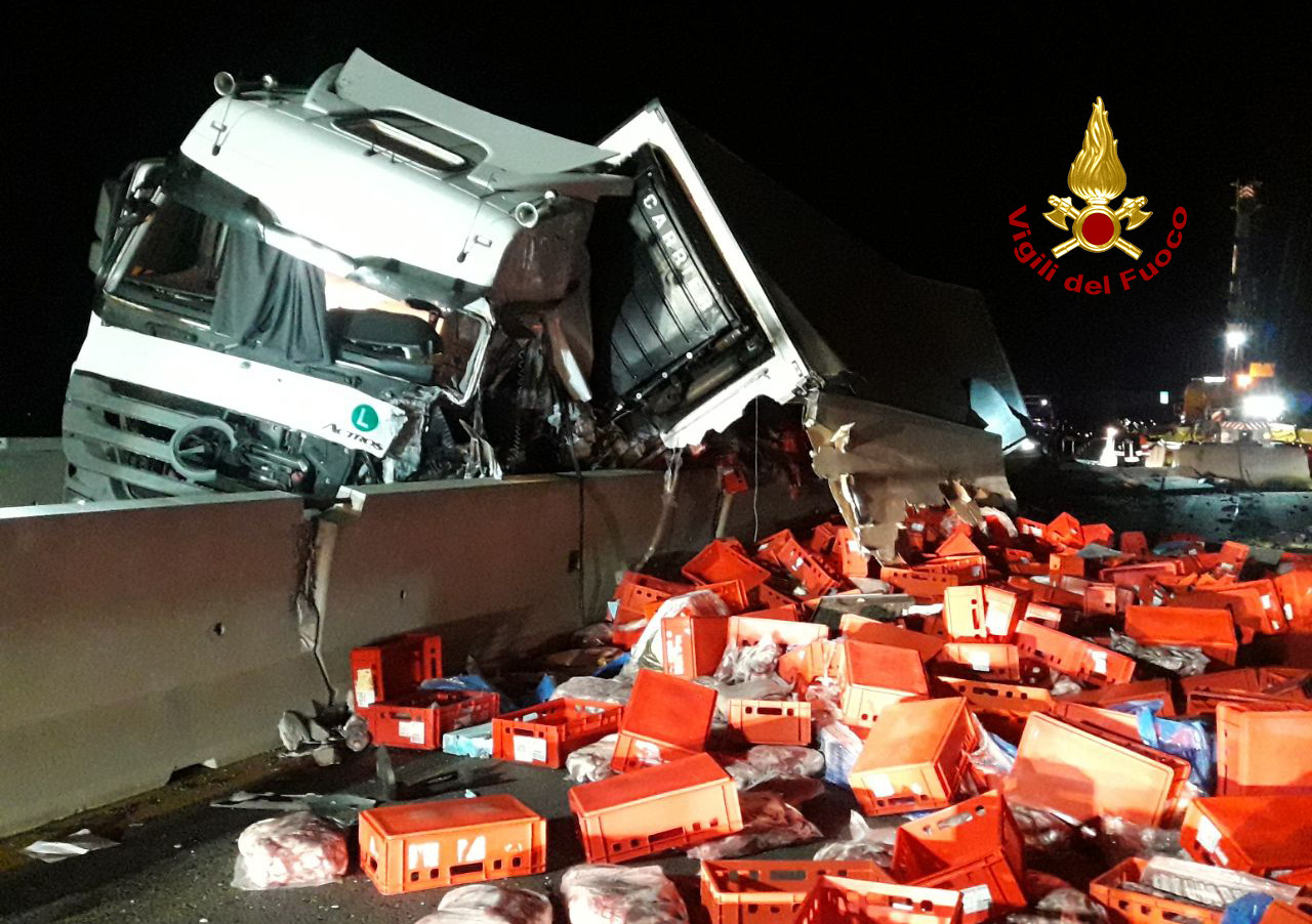 Durante le operazioni di soccorso, l’autostrada è rimasta chiusa in entrambe le direzioni, anche per recuperare la carne caduta dal camion frigo dispersasi nell’altro senso di marcia. Sul posto anche la polstrada. Le operazioni sono terminate dopo circa un’ora e mezza, mentre il mezzo sta ancora venendo rimosso.