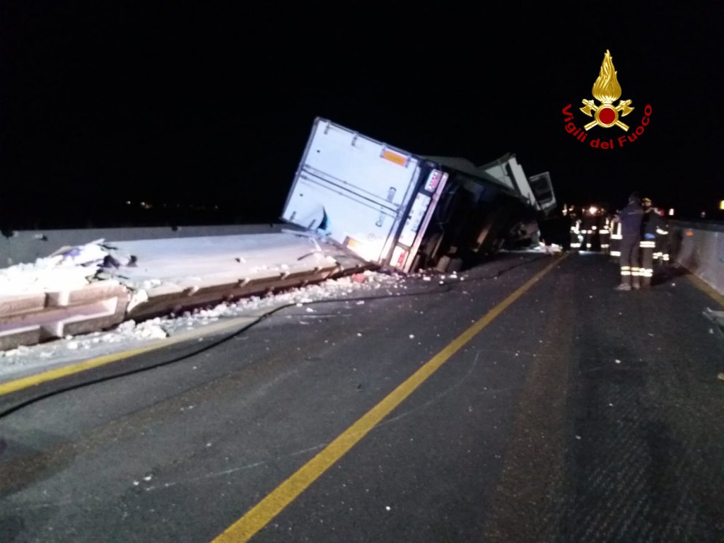 Veneto: camion si rovescia nella notte, autostrada Venezia Trieste chiusa (foto)