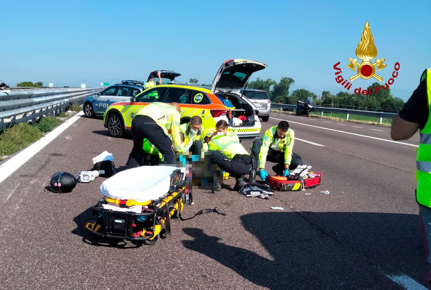 Un 47enne di Noventa Padovana, Denis Cacciatori, presidente della Casa di Riposo locale e funzionario di banca è rimasto vittima di un grave incidente con lo scooter ieri mattina ed è ora ricoverato in prognosi riservata a Vicenza. Viaggiava a bordo del mezzo con la moglie in autostrada A4 fra Grisignano e lo svincolo dell’A31 quando, secondo quanto riferito dalla Polizia Stradale, sarebbe esploso lo pneumatico posteriore facendoli cadere. Sul posto la Stradale, il Suem e i Vigili del fuoco. Ad avere la peggio l’uomo, che è stato intubato
