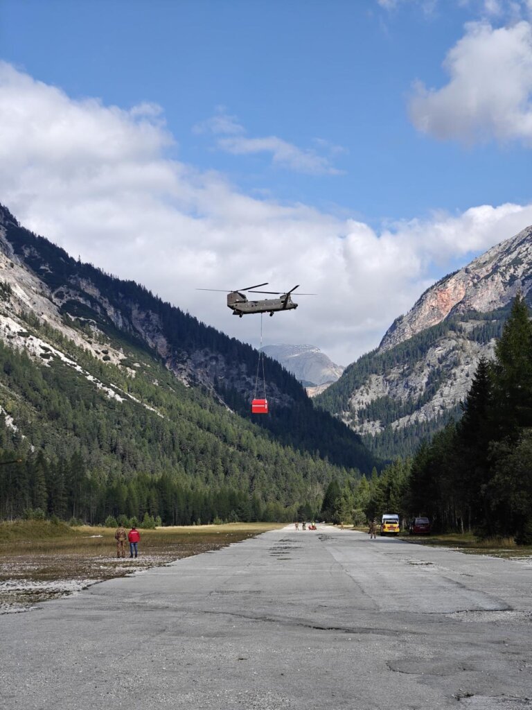 San Vito di Cadore (BL), 22 settembre 2024 – Da ieri, il Monte Pelmo è dotato di un nuovo bivacco d’emergenza. Grazie a condizioni meteorologiche favorevoli, le operazioni sono iniziate in anticipo, permettendo all’elicottero dell’Esercito CH47 “Chinook”, di base a Viterbo, di decollare alle 7:30 da Bolzano per trasportare la struttura da Fiames fino alla cima del monte.