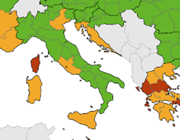 Veneto, Istria e Dalmazia da verde a giallo nella Mappa Europea del contagio