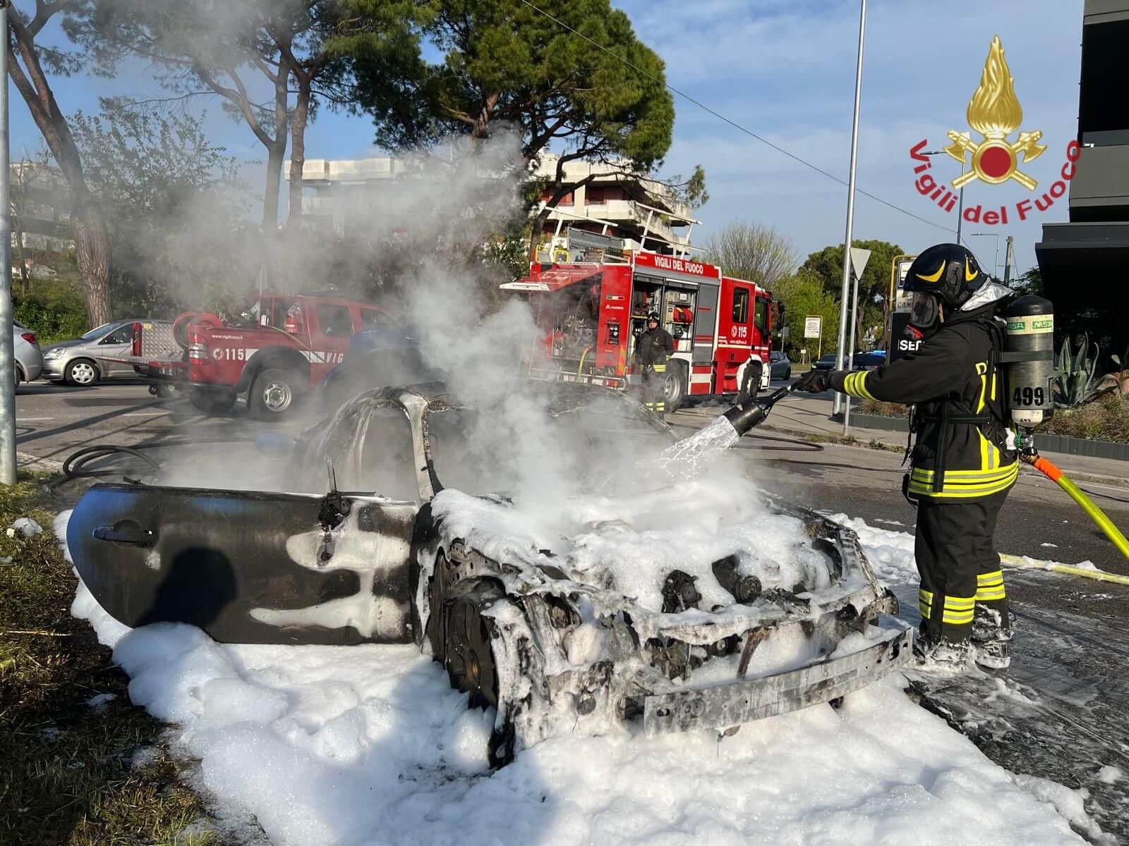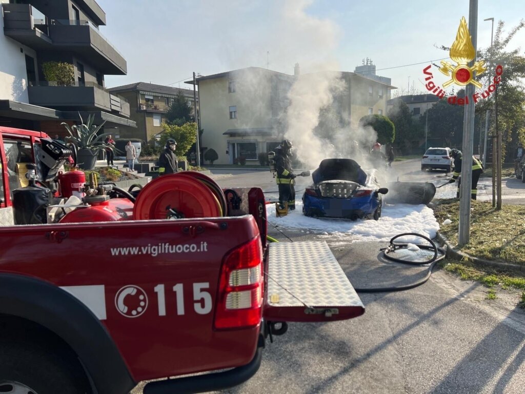 L’auto, alimentata a benzina, ha preso fuoco in pochi istanti, ma grazie all’intervento tempestivo di una squadra dei vigili del fuoco giunta dalla centrale di Padova, l’incendio è stato domato utilizzando liquido schiumogeno.