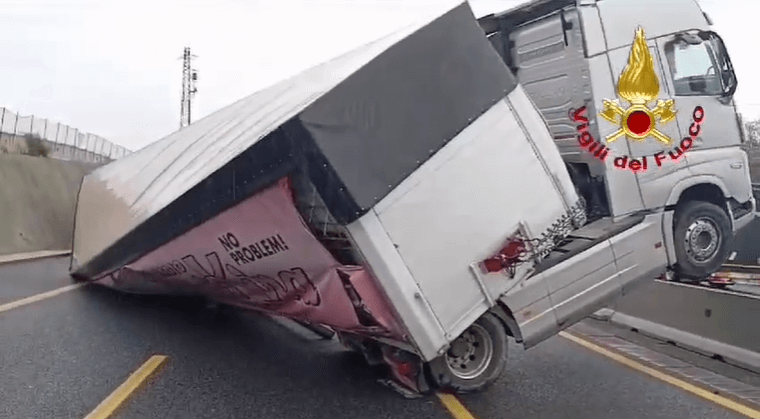 Veneto – Perde il controllo del camion: A4 bloccata (video)